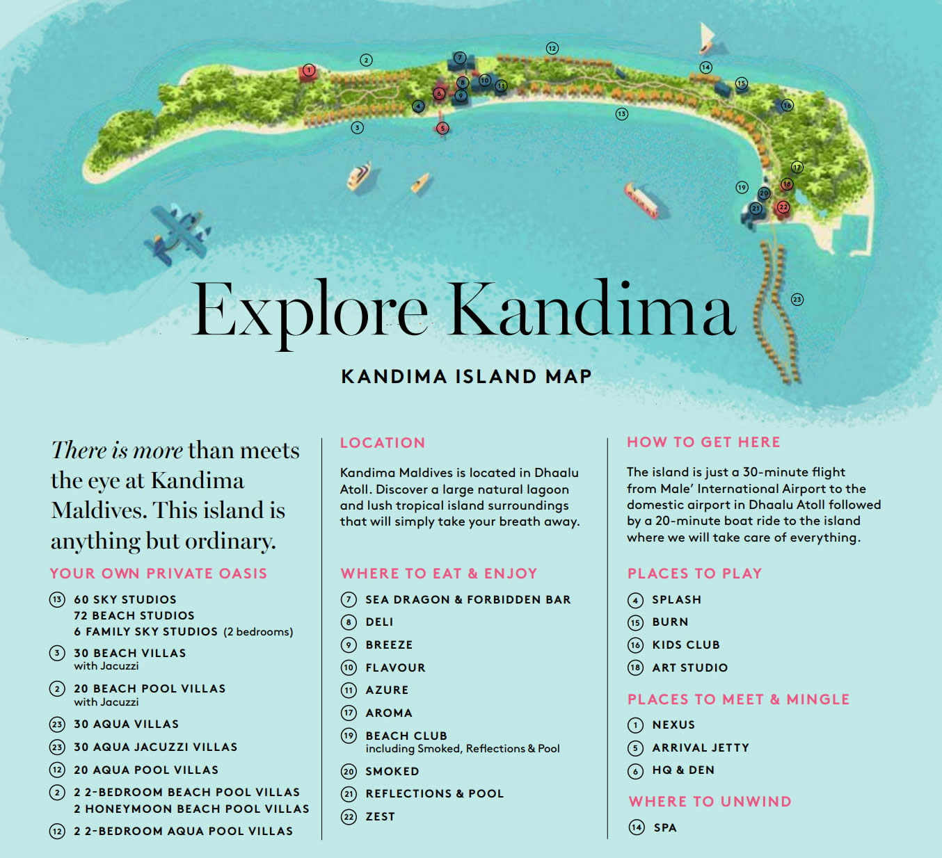 กันดิมา มัลดีฟส์เป็นมากกว่าแค่วันหยุด แต่เป็นไลฟ์สไตล์ที่จับต้องได้! สัมผัสกับจุดหมายปลายทางแห่งการเปลี่ยนแปลงเกมแห่งใหม่นี้ด้วยห้องสตูดิโอและวิลลาที่ออกแบบอย่างมีสไตล์ 264 ห้อง ห้องอาหารสุดพิเศษ 10 แห่ง และกิจกรรมสนุกๆ มากมายให้เลือกทำ รีสอร์ทที่มีสไตล์อย่างจริงจังแห่งนี้รองรับแขกทุกวัยและในงบประมาณที่แตกต่างกัน: ครอบครัว คู่รัก กลุ่มเพื่อน และคู่ฮันนีมูน ไม่ว่าคุณจะแสวงหาความโรแมนติก การผจญภัยทางน้ำ กิจกรรมออกกำลังกาย การพักผ่อนในสปา หรือแค่ใช้เวลากับครอบครัว กันดิมา มัลดีฟส์มีทุกสิ่งสำหรับทุกคน เกาะแห่งนี้ตั้งอยู่ใน Dhaalu Atoll ใช้เวลาบินเพียง 30 นาทีจากสนามบินนานาชาติ Velana จากนั้นนั่งเรืออีก 20 นาทีไปยังเกาะที่มีสไตล์อย่างจริงจังแห่งนี้